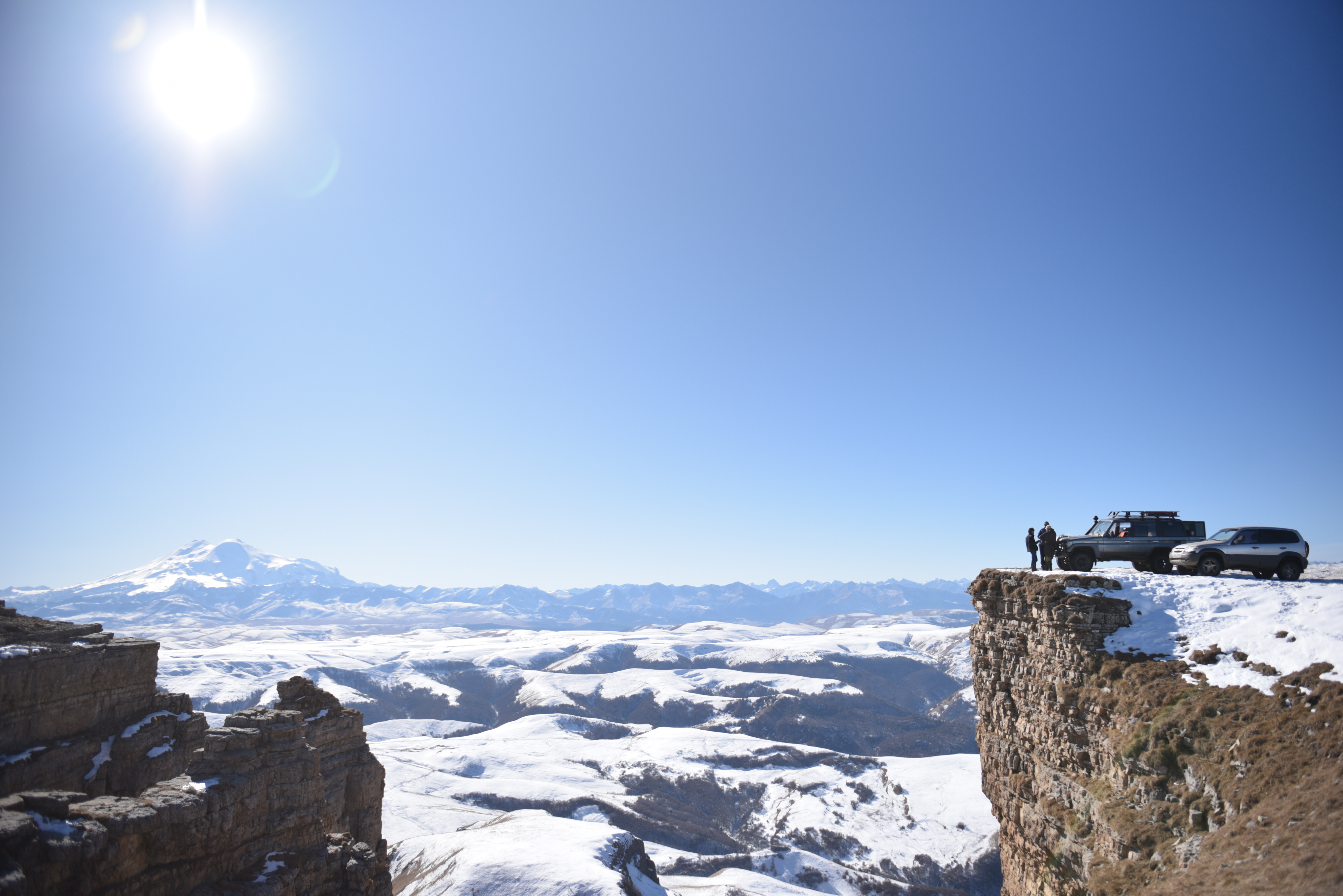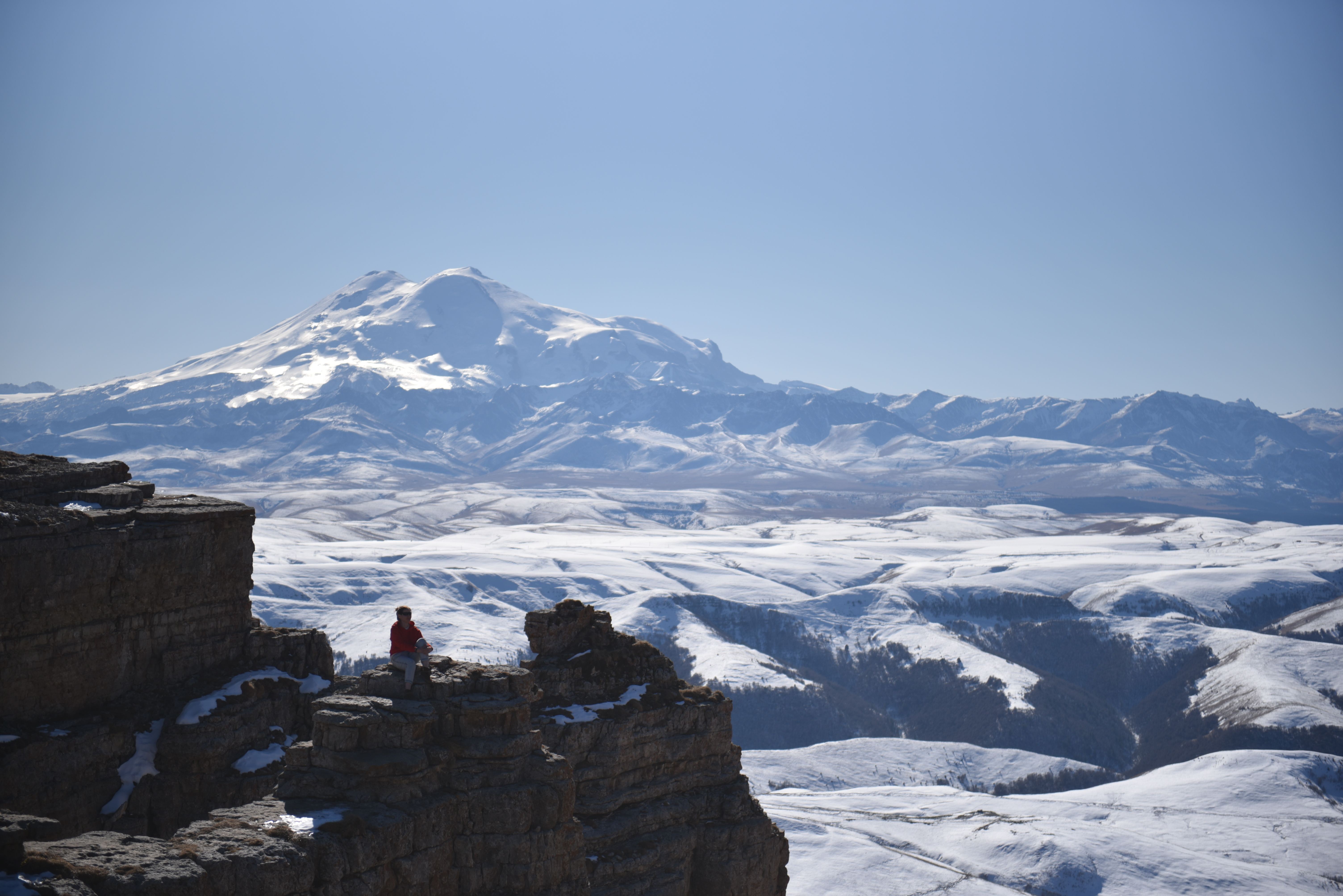 Открывается потрясающий вид на гору Эльбрус.