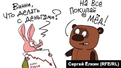 Суалазе жаваб кьолеб бугин ккола «Кавказский Узел» сайталъе комментариял гьарурай акция гIуцIаразул цояй Яна Гончаровалъ. Гьелъ абулеб буго: «Нижее бокьун буго Россиялъул гъурщил рахъ кквезе, щайгурелъул гьеб ккун буго пашманаб хIалалде. Америкаялъулаз жидерго доллар хира гьабулеб буго, мискIинаб гъурщидайин абуни (гIодизе бачIинехъин буго), бажаралеб гьечIо гьелдаса бергьине, нижее бокьун буго нухмалъиялда малъизе, щиб гьелда хурхун гьабизе колебали». Гьеле гьединал руго Гончаровалъул рагIаби.