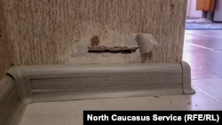 “Если присмотреться, здесь в стене заделанная дыра. Она расползается, её замазывают снова. И так уже четыре года. - рассказала Елена “Кавказ.Реалии”.